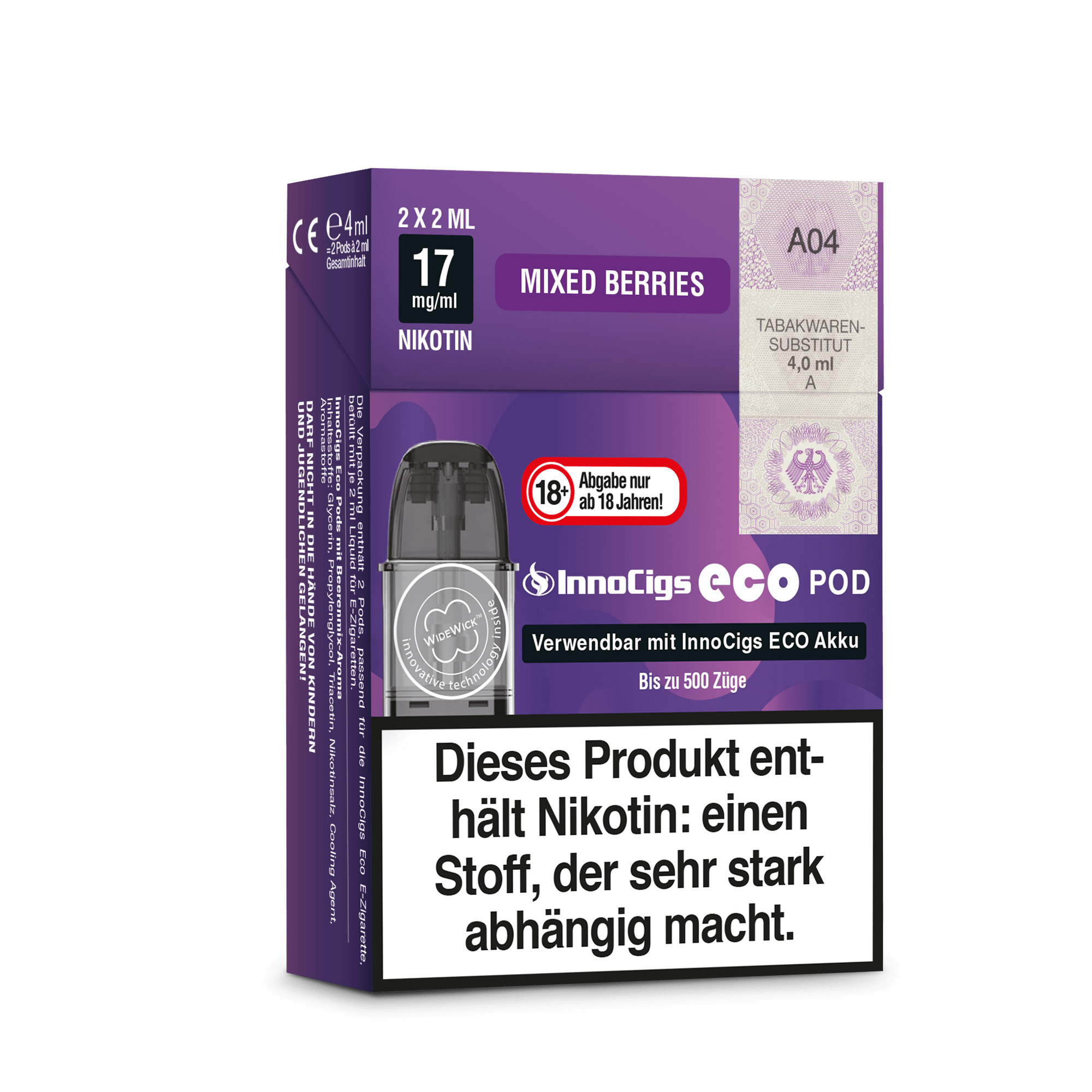 Erlebe fruchtige Vielfalt mit dem InnoCigs Eco Pod – Mixed Berries! Die praktischen Pods sind mit einem intensiven Beerenmix-Geschmack vorbefüllt und bieten ein ausgewogenes Dampferlebnis. Jeder Pod enthält 2 ml Liquid mit 20 mg/ml Nikotinsalz und ist perfekt auf das InnoCigs Eco System abgestimmt. Der Zug ist angenehm weich und sorgt für einen authentischen Geschmack – ideal für alle, die auf süß-fruchtige Aromen stehen. Einfach den leeren Pod austauschen, einstecken und genießen!
