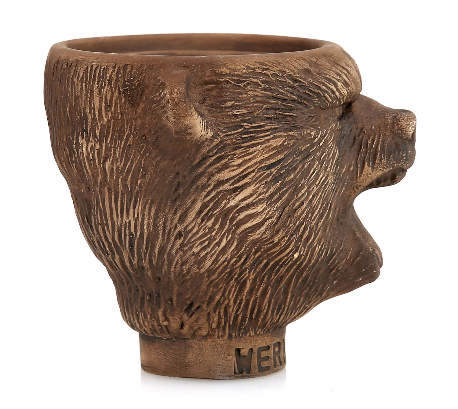 Der Werkbund Bear wird aus 3 verschiedenen Tonarten hergestellt und durchläuft 3 Brennverfahren um den Kopf perfekt zu stabilisieren und zu härten. Dabei wurden keine Farbstoffe verwenden. Die Farbe des Kopfes ist die natürliche Farbe der verschiedenen Tonsorten.